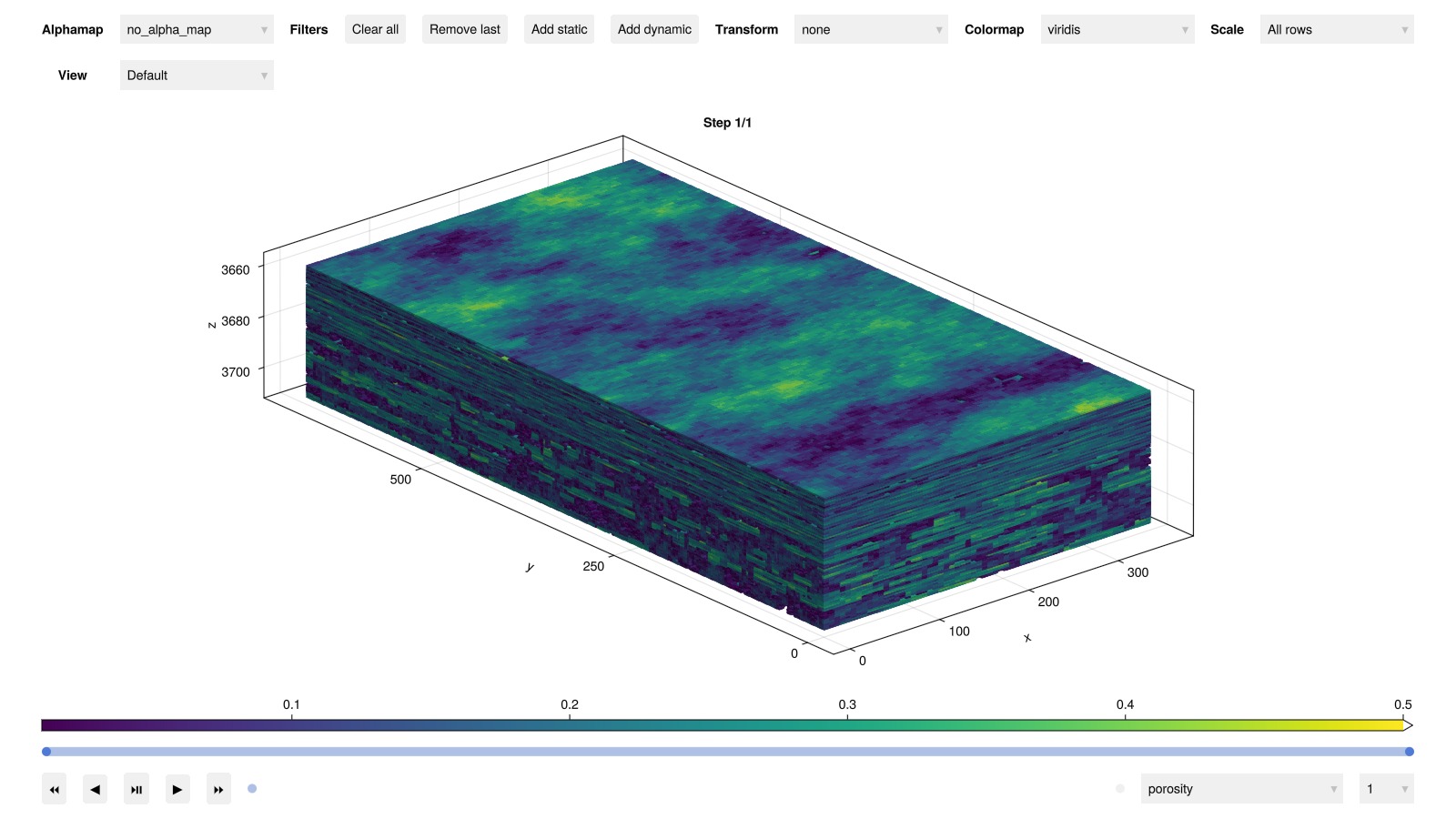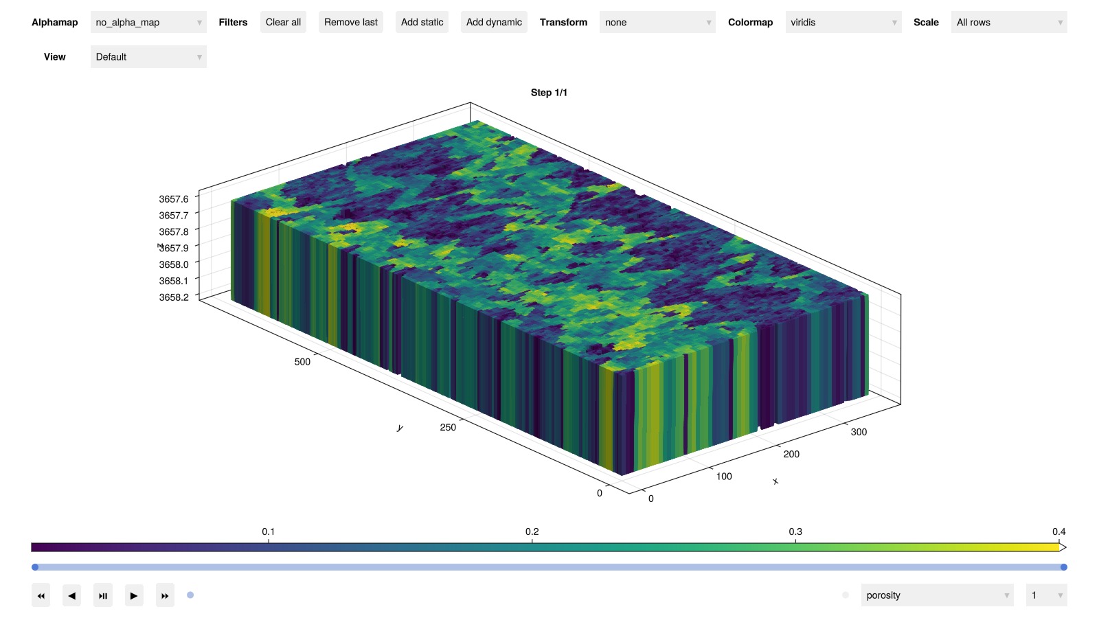 Note that some cells are removed due to very low porosity. The setup function has additional options to control this behavior if you would rather limit the minimum porosity than removing cells.
