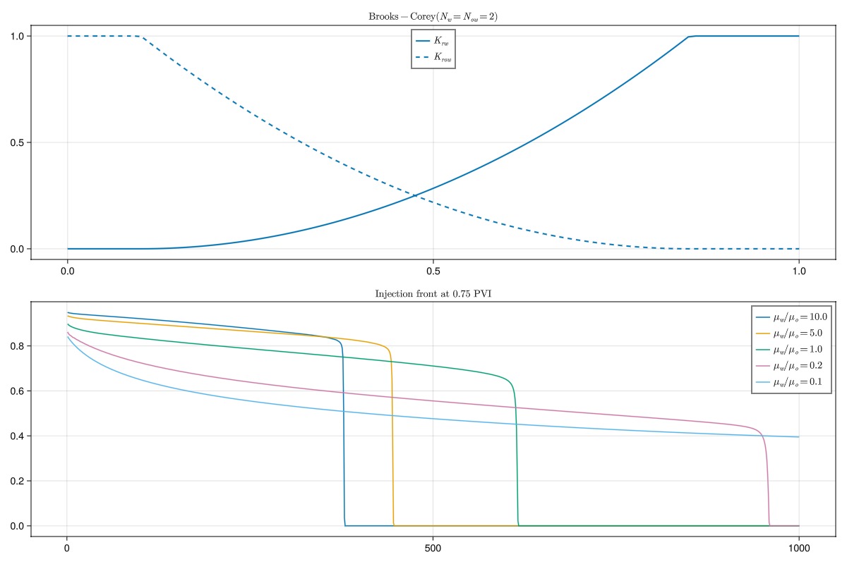 model, parameters = setup_model_with_relperm(krdef, mu_ratio = mu_ratio)