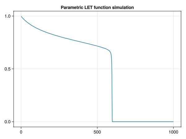 lines(simulate_bl(model, prm), axis = (title = "Parametric LET function simulation",))