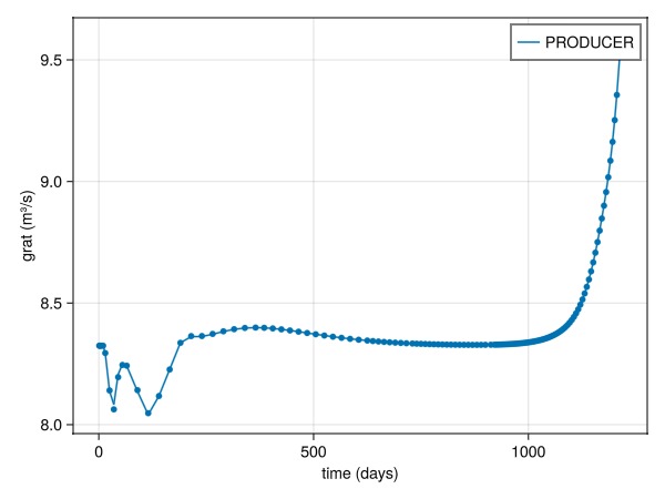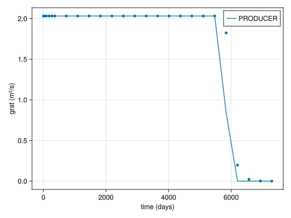 plot_comparison(wells, ref, rep_t, :qgs, [:PRODUCER])
