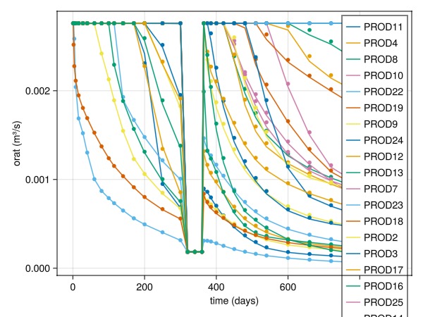 plot_comparison(wells, ref, rep_t, :qws, producers)