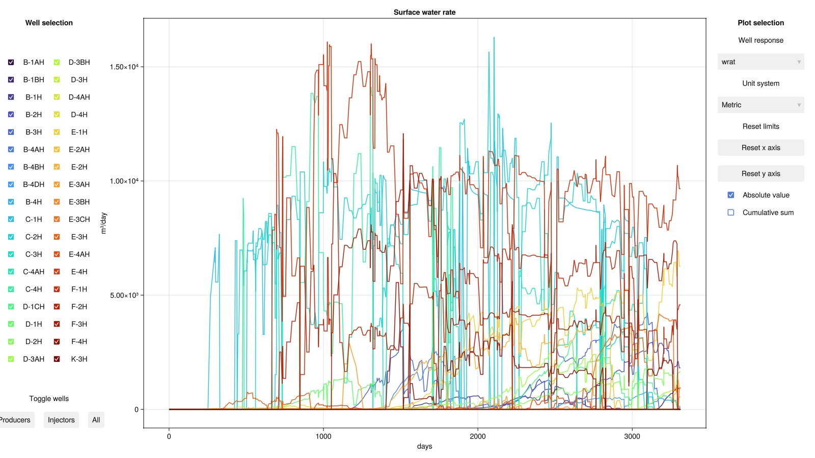 yl = "Cumulative water rate / m³"