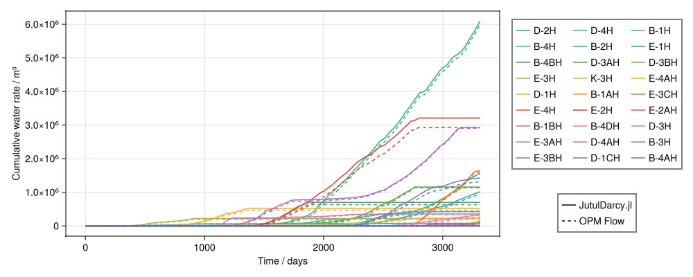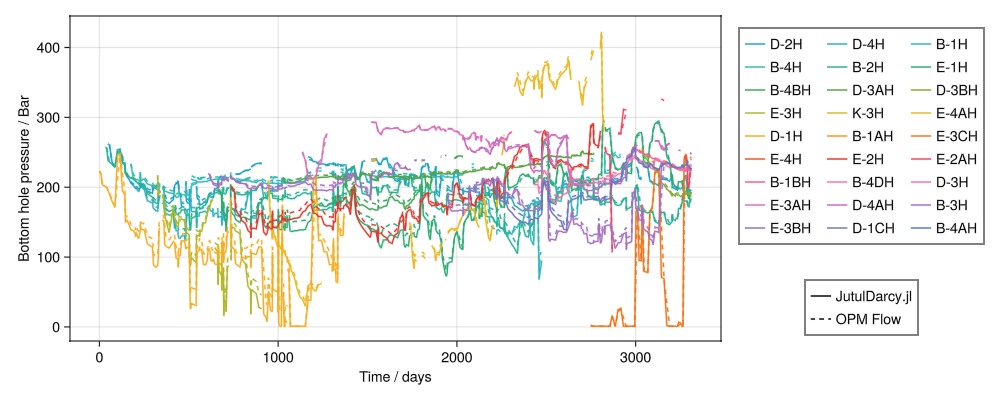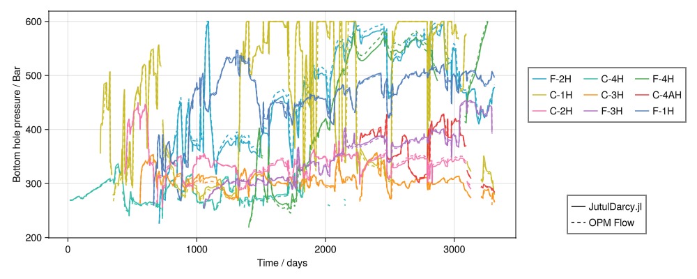 Legend(fig[4, 2], [l1, l2], ["JutulDarcy.jl", "OPM Flow"])