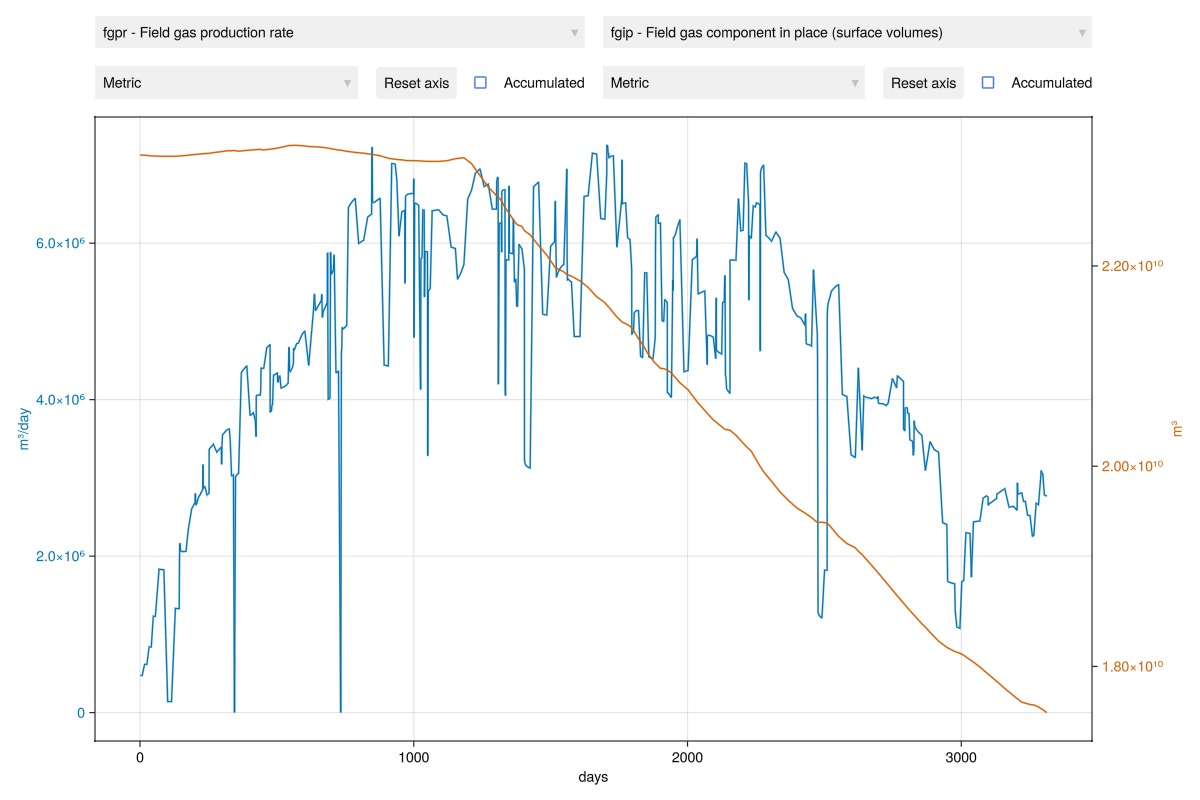 plot_reservoir_measurables(case, ws, states, left = :fgpr, right = :pres)