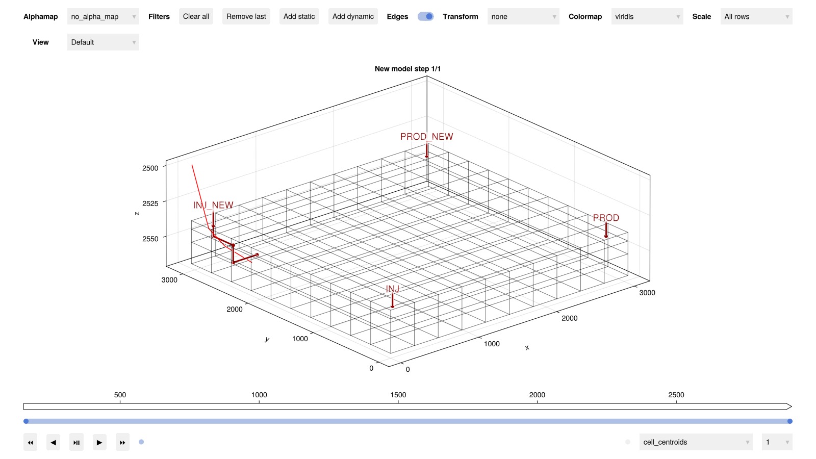 We can also add more wells than originally present by adding new wells with new names. Some care will have to be taken later on to ensure that these wells have valid control and limits. We pick a cell with a IJK index to place this producer.