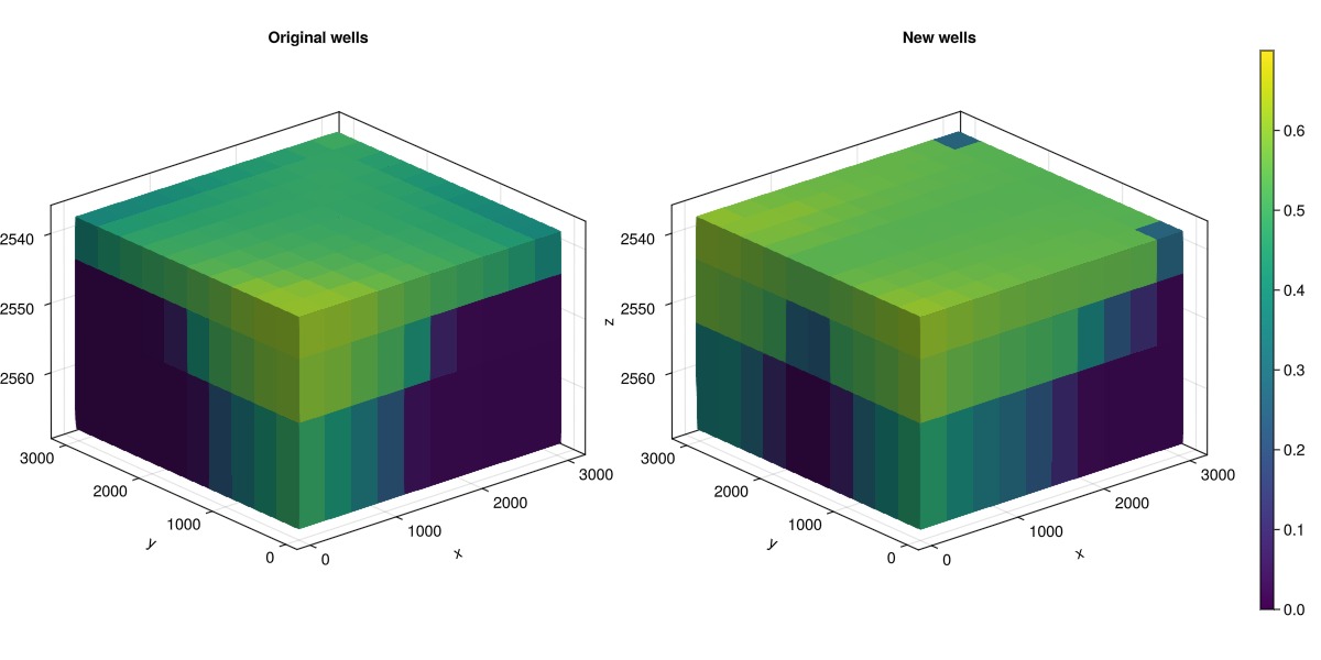 ax = Axis3(fig[1, 2], zreversed = true, title = "New wells")