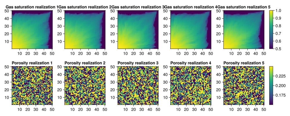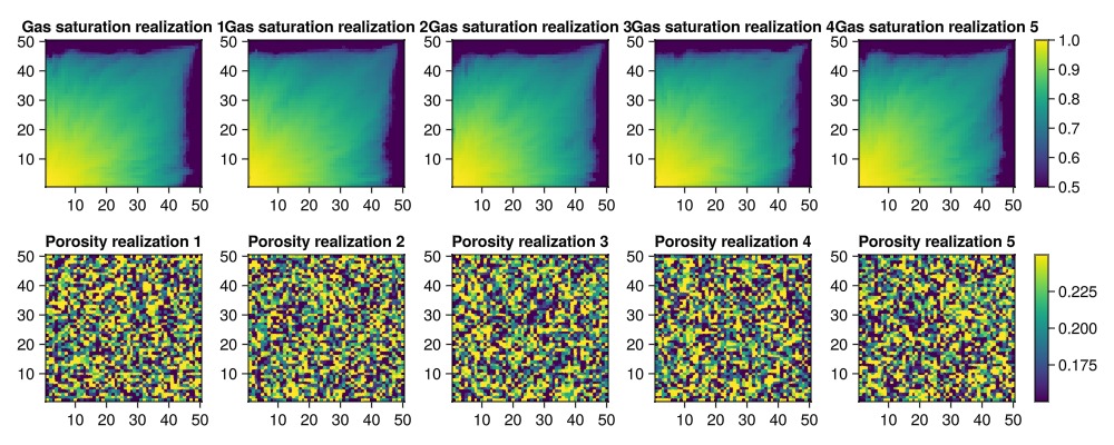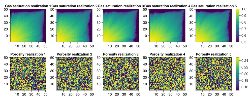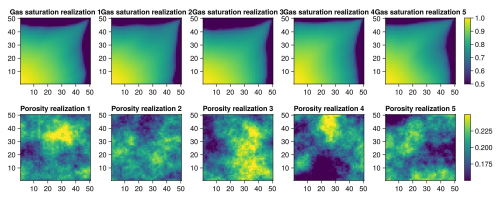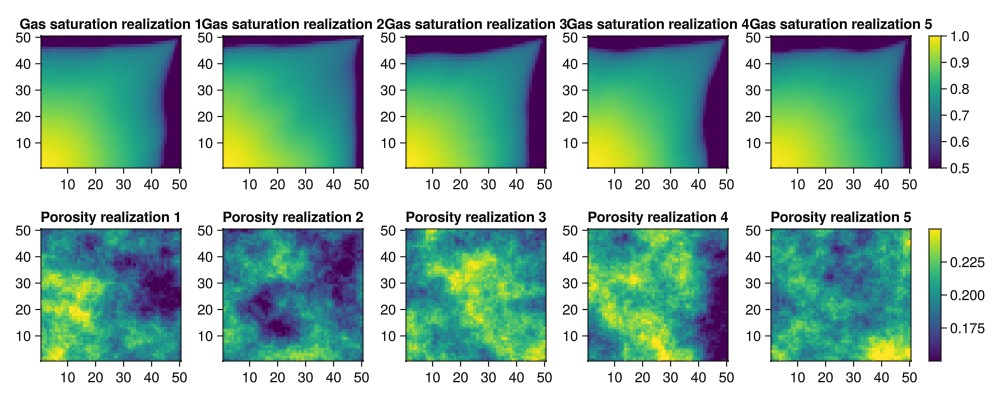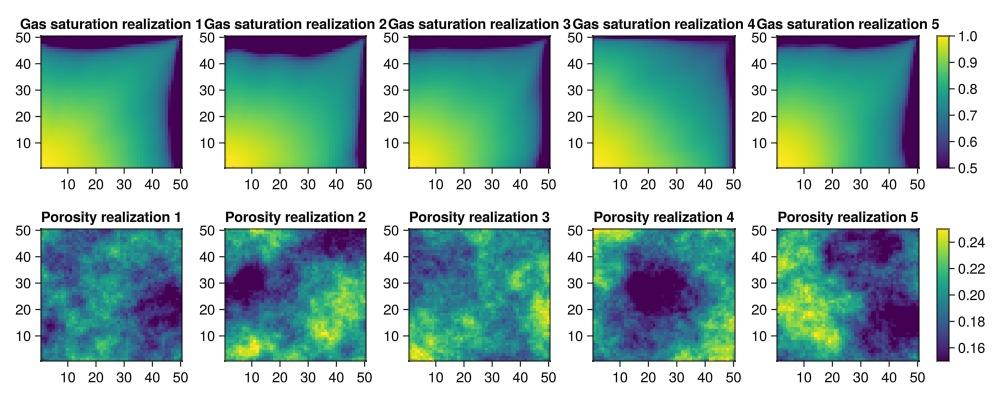 plot_realizations(saturations, porosities_uniform)