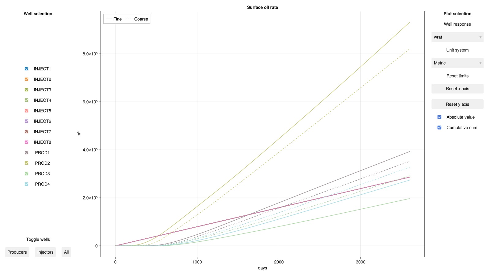 We can plot the well results in the interactive viewer using the comparison feature that allows multiple results to be superimposed in the same figure.