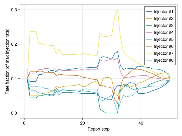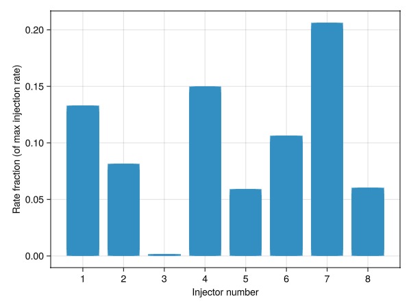 ax = Axis(fig[1, 1], xlabel = "Injector number", ylabel = "Rate fraction (of max injection rate)")