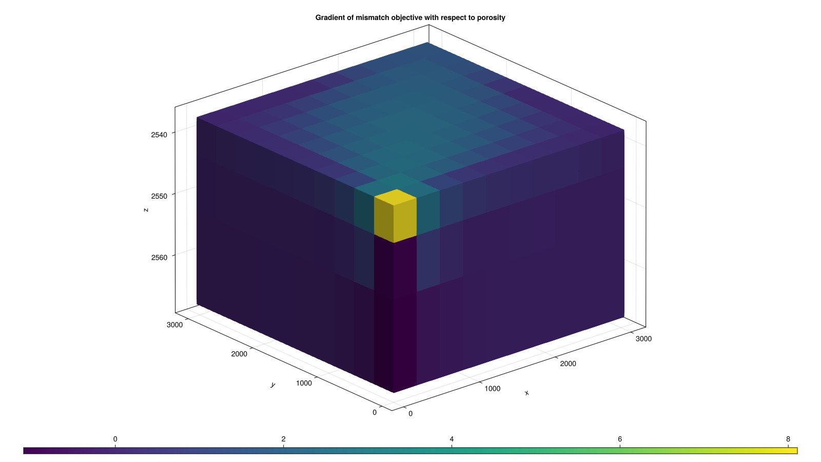 ax.title[] = "Gradient of mismatch objective with respect to porosity"