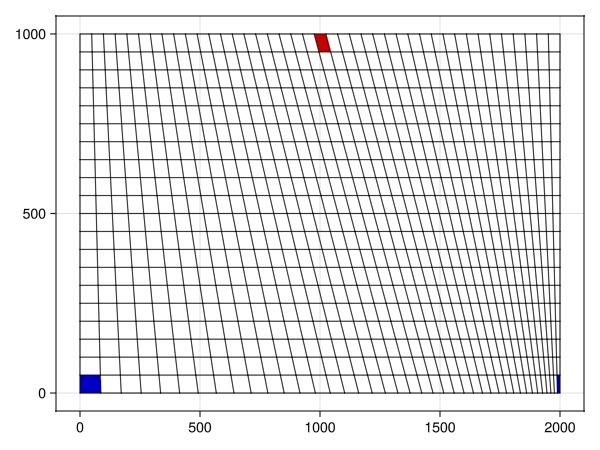 plot_mesh!(ax, g, cells = [c_p1, c_p2], color = :blue)