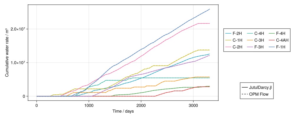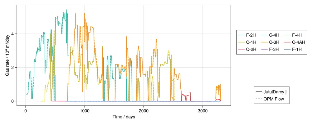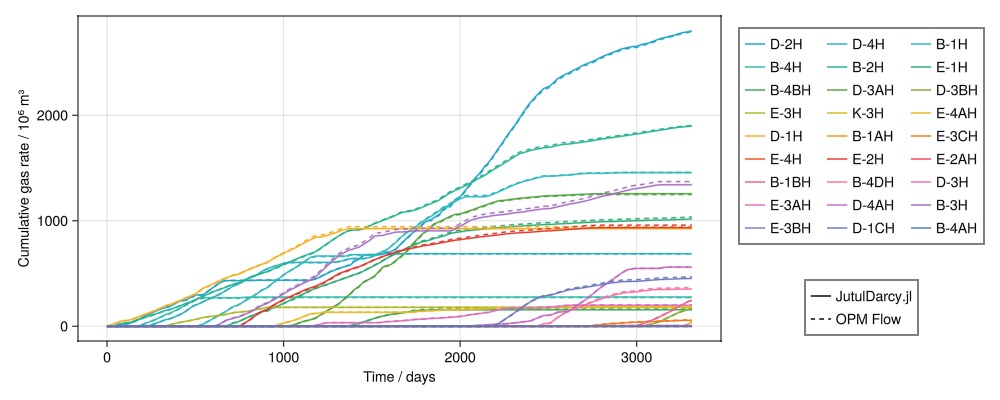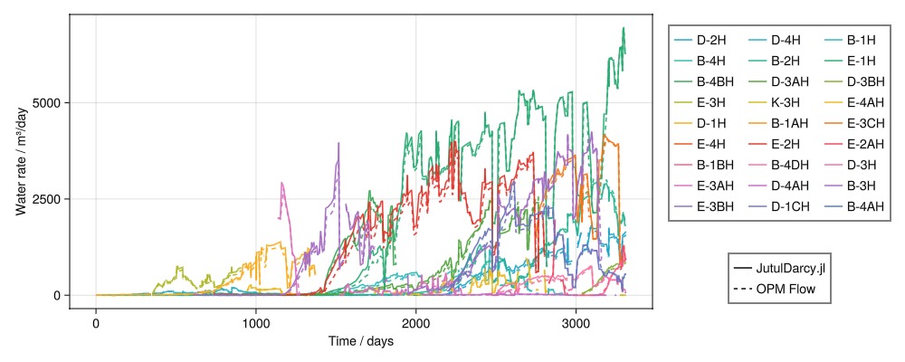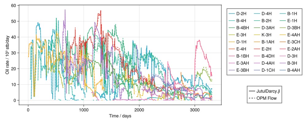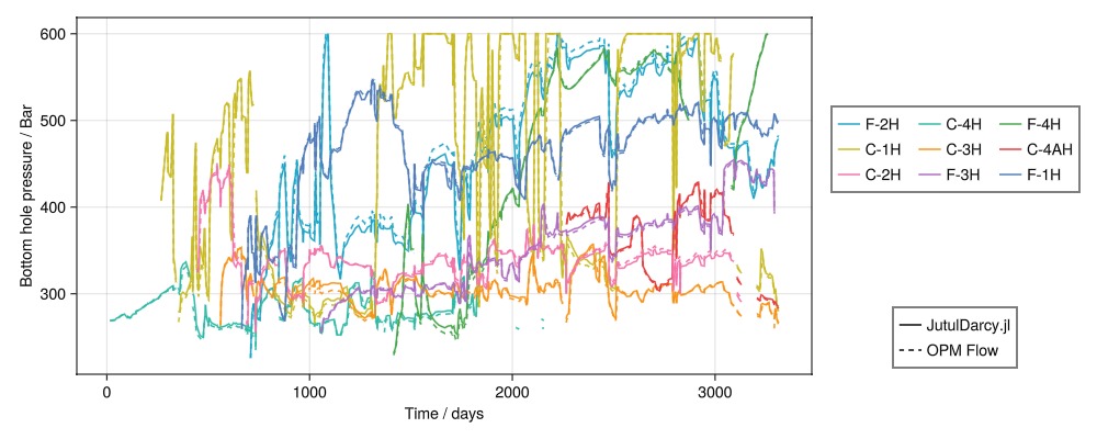 Legend(fig[4, 2], [l1, l2], ["JutulDarcy.jl", "OPM Flow"])