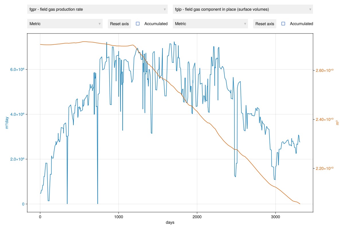yl = "Gas rate / 10⁶ m³/day"