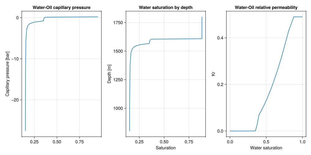 ax3 = Axis(fig[1, 3], title = "Water-Oil relative permeability", ylabel = "Kr", xlabel = "Water saturation")