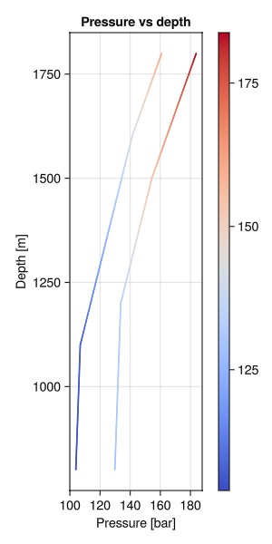 pressure_vs_depth_plot(states_3ph_1[end])