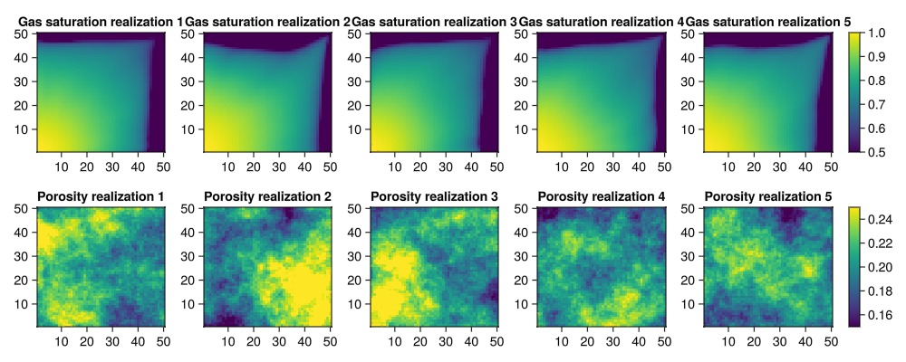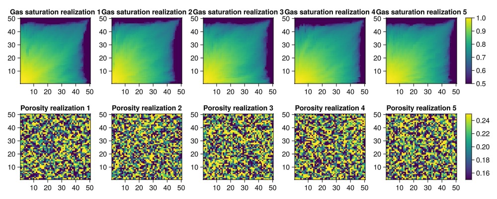 plot_realizations(saturations, porosities_uniform)