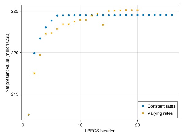 case1, hist1, x1 = optimize_rates(:first);Rate optimization: steps=:first selected, optimizing one set of controls for all steps.