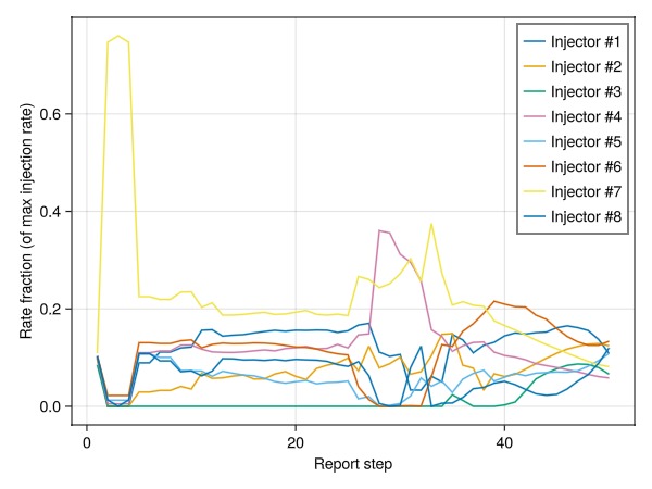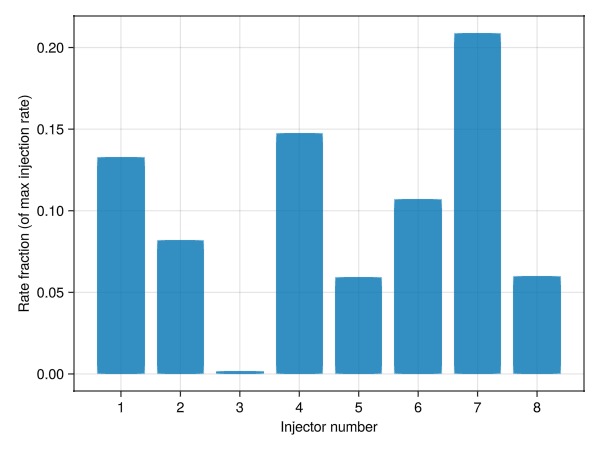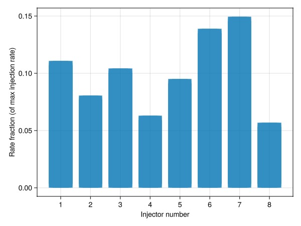ax = Axis(fig[1, 1], xlabel = "Injector number", ylabel = "Rate fraction (of max injection rate)")