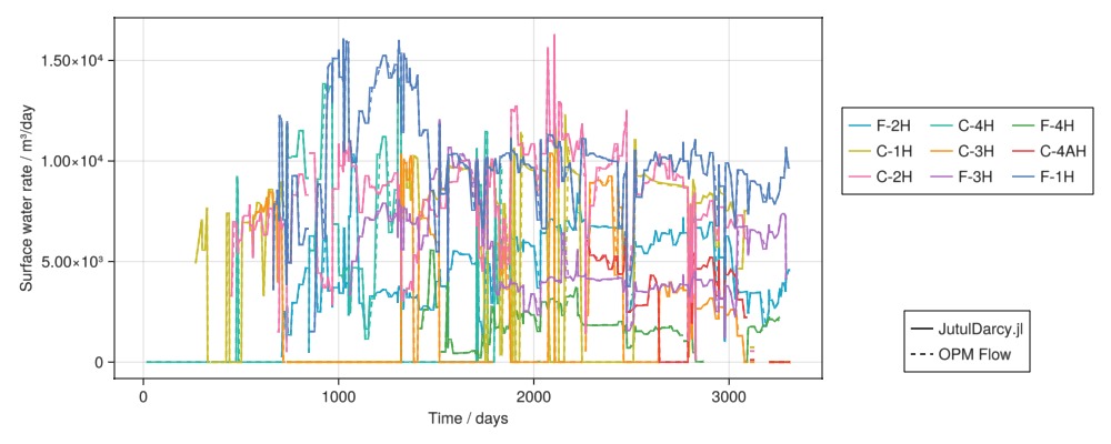 Legend(fig[4, 2], [l1, l2], ["JutulDarcy.jl", "OPM Flow"])