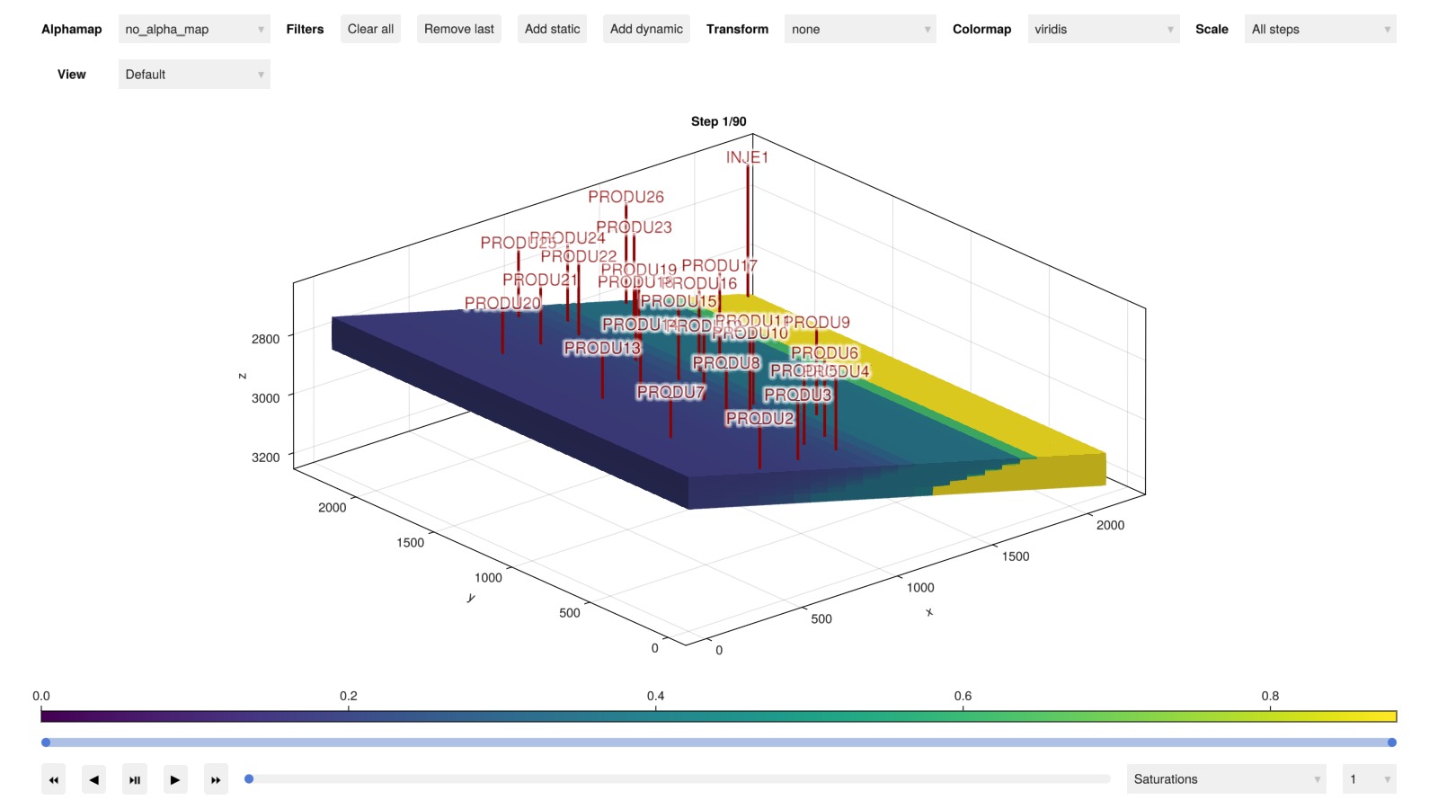 Pkg.add("JutulDarcy") # Reservoir simulatorTo verify that everything is working, we have a minimal example that runs a industry standard input file and produces interactive plots. Note that interactive plotting requires GLMakie, which may not work if you are running Julia over SSH.