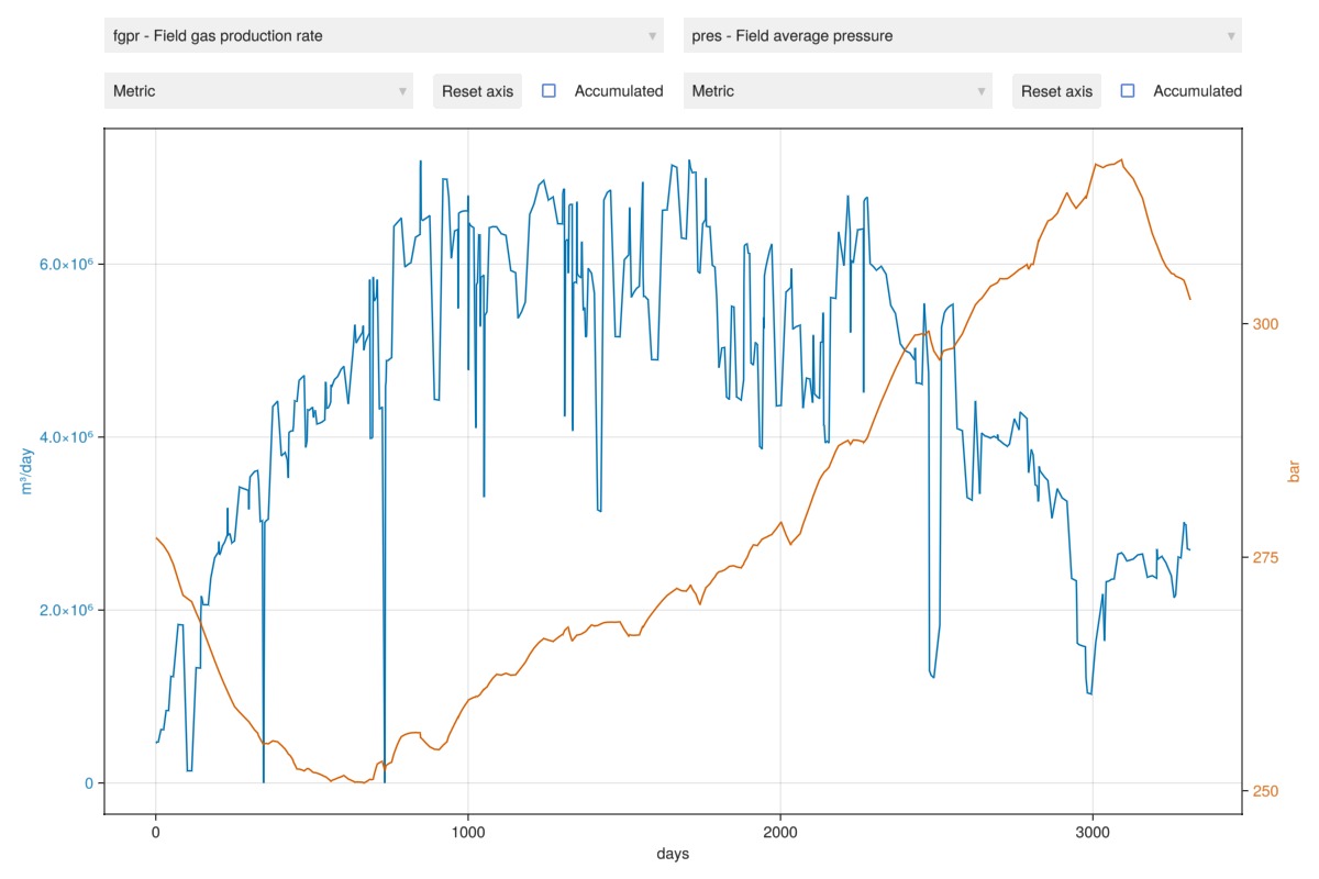 plot_reservoir_measurables(case, ws, states, left = :fgpr, right = :pres)